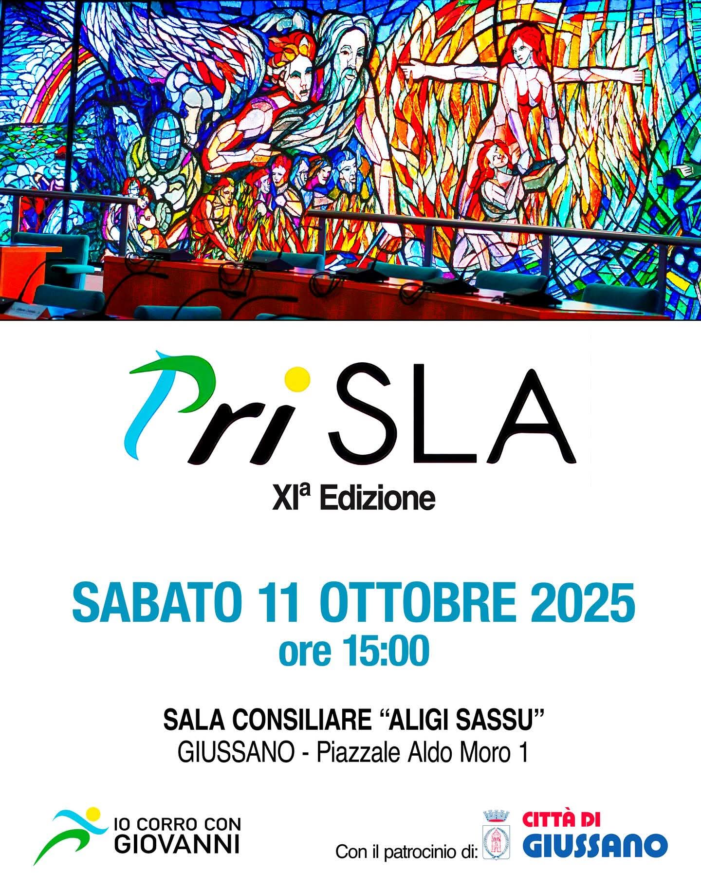 L'Associazione Io Corro Con Giovanni, con il patrocinio del Comune di Giussano, organizza l'evento PriSLA: la premiazione delle migliori tesi di laurea riguardanti la Sclerosi Laterali Amiotrofica, giunta quest’anno alla sua undicesima edizione. Attraverso il Premio, in collaborazione con le più importanti Università Italiane, si finanziano e premiamo le migliori lauree per la ricerca sulla SLA. L’obiettivo è stimolare i giovani a condurre sempre più ricerche su questo argomento.