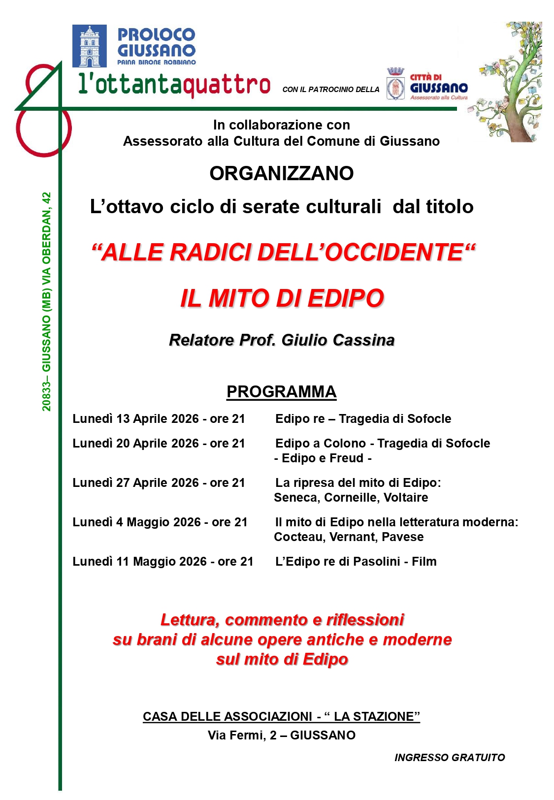 Il Circolo Culturale l'Ottantaquattro, con il Patrocinio del Comune di Giussano, organizza l'ottavo ciclo di serate culturali "Alle Radici dell'Occidente"