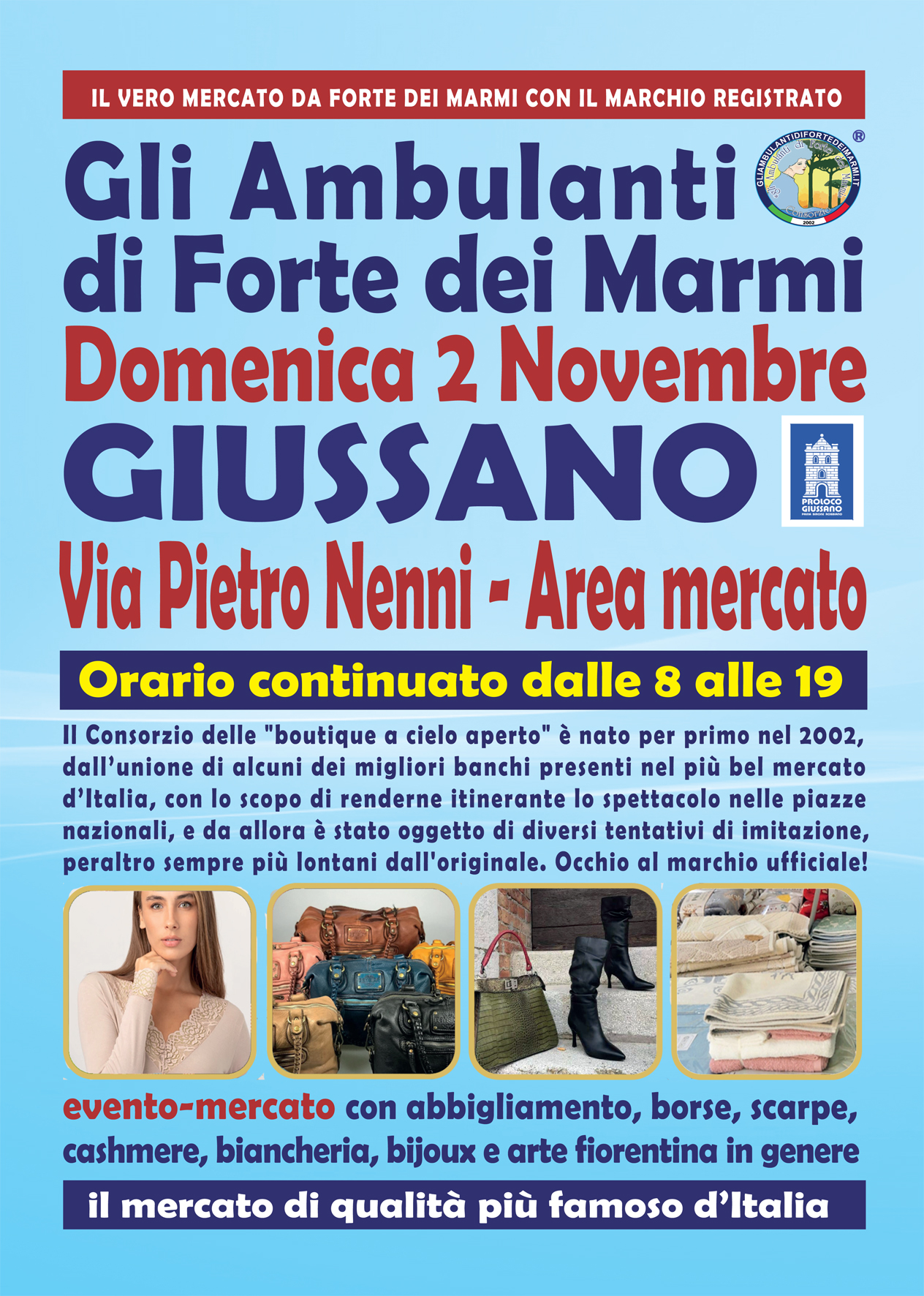 Il Consorzio degli Ambiulanti di Forte dei Marmi, in collaborazione con Pro Loco, arriva a Giussano con le sue bancarelle di artigianato italiano.