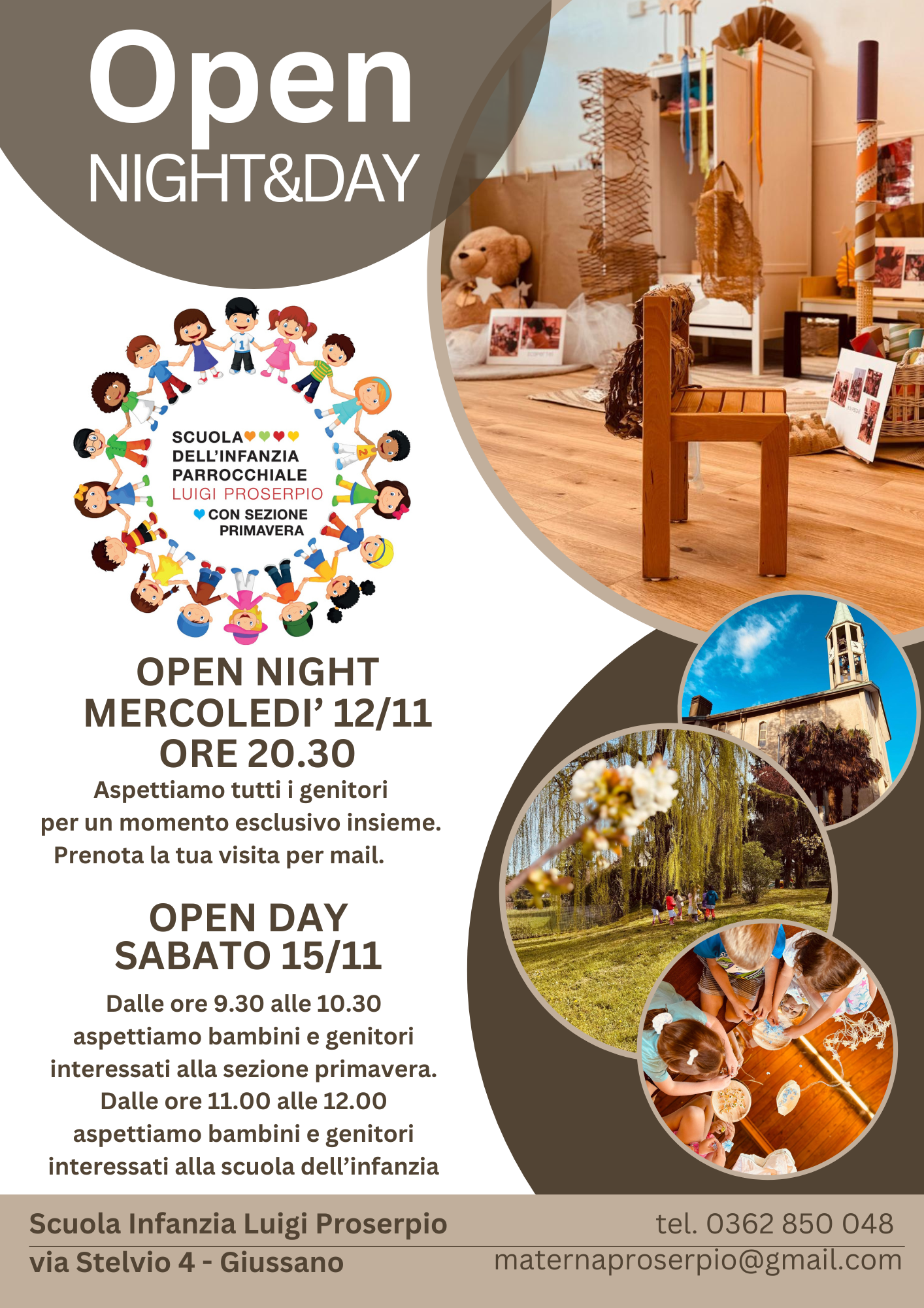 Open night (riservata ai genitori): mercoledì 12 novembre 2025, ore 20.30. Prenota la tua visita scrivendo a: maternaproserpio@gmail.com